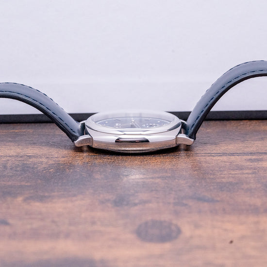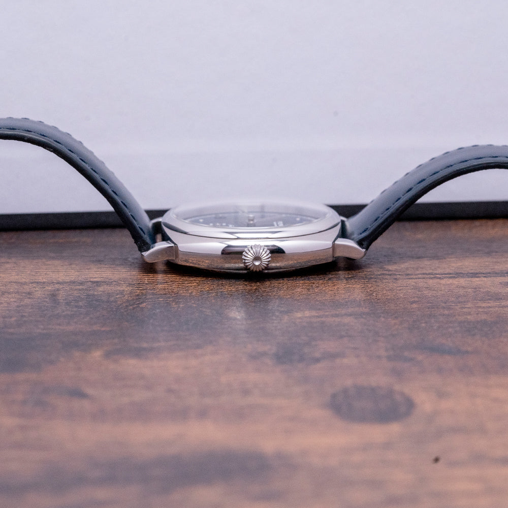 Here, you can purchase a 2020 Fears Brunswick Blue BS23800A, which is now discontinued and no longer being produced. Each piece is made in small batches with a unique serial number engraved between the lugs at 12 o’clock. This number can identify the watch's history from its master database. The inspiration for this watch case comes from a Fears watch originally made in 1924. Its wonderfully curvaceous 38mm case is manufactured in Germany and made from 316L stainless steel. The case has only one flat surface, its rear sapphire crystal. The finish and depth of polishing are quite exquisite and showcase the German manufacturers' skill and attention to detail.