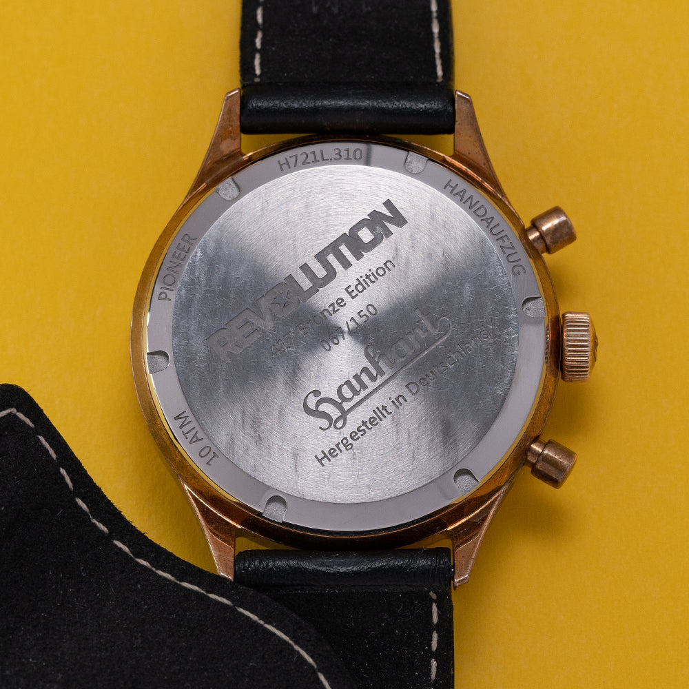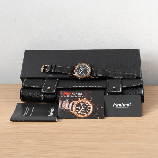 This watch is sold with its original Hanhart Box, travel case & Paperwork. The watch comes paired with its original 21mm Hanhart Bund leather strap with a signed bronze buckle. The watch is from September 2020 and is sold in worn condition but overall very fair condition, as you can see from the photographs. The watch comes with our 12-Months Warranty.