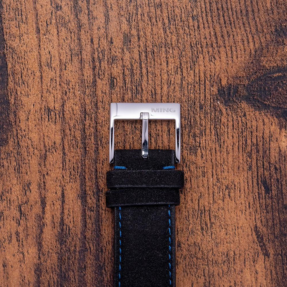 This watch is sold with its original Ming box, travel pouch and Ming paperwork and is also sold in worn condition but overall in very fair condition as you can see from the photographs. The watch comes paired with its quick-release 20mm black Alcantara leather with blue stitching, handmade by Jean Rousseau Paris. The watch is from March 2020 and is sold in worn condition but overall in very fair condition, as you can see from the photographs. The watch comes with our 12-Months Warranty.