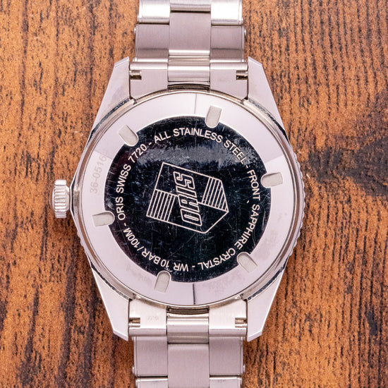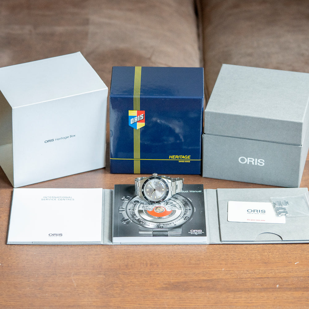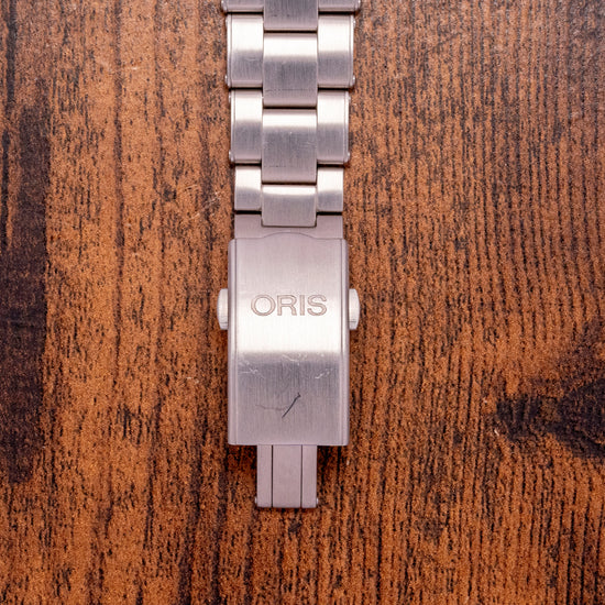 This watch is sold with its original Oris box and Papers. The watch comes paired with its original Oris 21mm faux-rivet (secured by screws) stainless steel bracelet secured by a folding deployant clasp, all links are provided. The watch is from January 2020 and is sold in worn condition, however, overall as you can see the watch is in fair condition and comes with our 12-Months Warranty.
