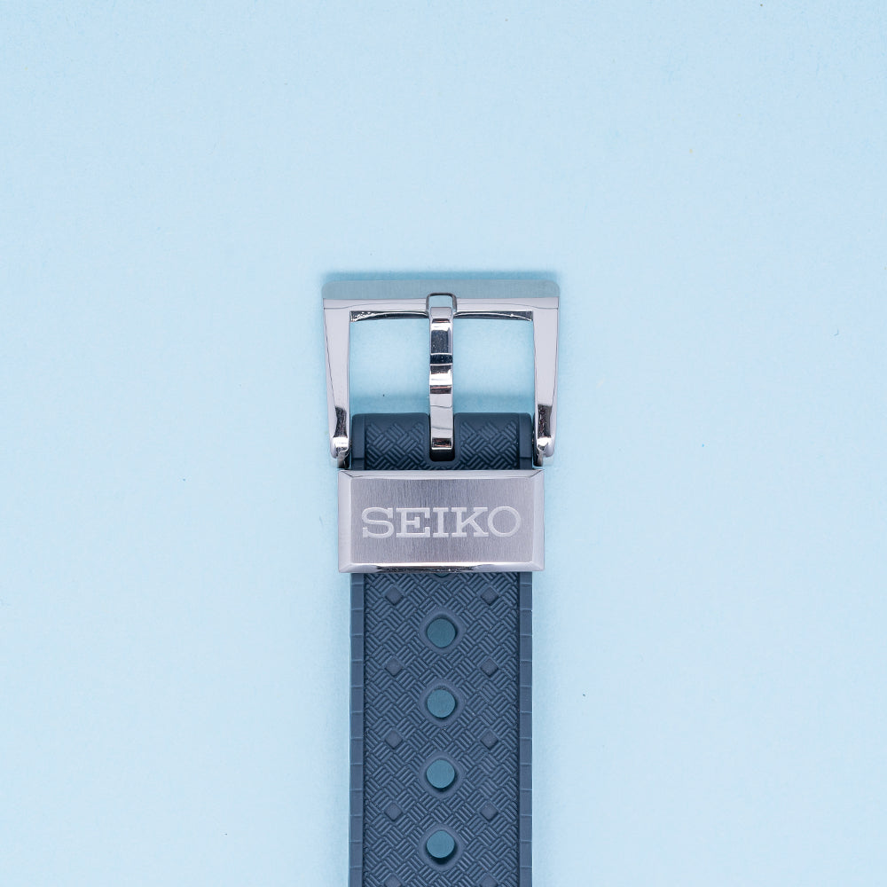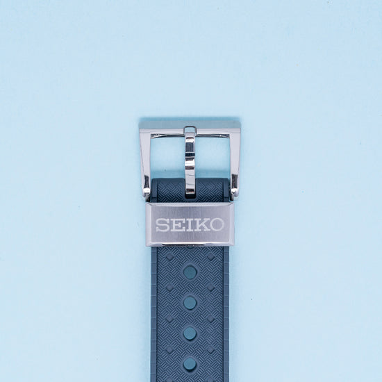 This watch is sold with its original Seiko box and paperwork. The watch comes paired with its original 19mm matte blue silicone strap with a signed buckle. The watch is from September 2020 and is sold in worn condition, but overall very fair condition as you can see. The watch comes with our 12-Months Warranty.