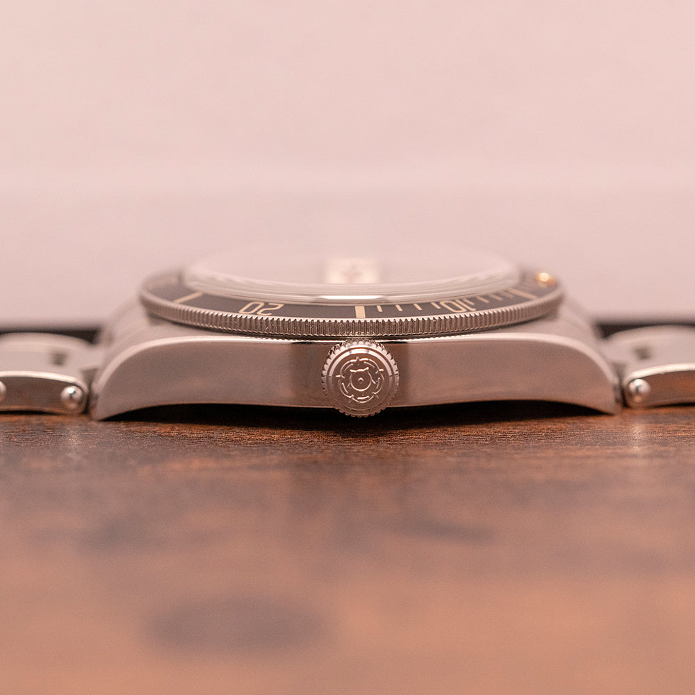 The Tudor trademark was first registered in 1926 by the Swiss watchmaking company “Veuve de Philippe Hüther” on behalf of Hans Wilsdorf, the founder of Rolex watches. Wilsdorf took it over himself in 1936. Just after the second world war, Hans Wilsdorf Founder of Rolex knew that the time had come to expand and give the Tudor brand a proper identity of its own. The Tudor Rose started to appear on their dials from this time. Thus, on 6 March 1946, he created the “Montres TUDOR S.A.” company, specialising in models for both men and women. Rolex guaranteed the technical, aesthetic and functional characteristics, along with the distribution and after-sales service. In 1948 we saw the first Tudor-specific advertising. A few years later they introduced the TUDOR Oyster Prince in 1952. Hans Wilsdorf allowed Tudor to use their waterproof Oyster case and the original self-winding Perpetual ’rotor’ movement. This was an exclusive arrangement that benefitted both brands. Development soon commenced with the introduction of the TUDOR Oyster Prince Submariner, reference 7922 in 1954. This watch was quickly adopted by the French Navy in 1956. Building on its reputation of robustness in 1961 the Rose was replaced by the shield. Later in 1969, we saw the design changes in Ref. 7016 where for the first time square indexes and angular hands nicknamed “Snowflake” allowed for a greater amount of lume to be applied and the divers of the French Navy appreciated this. Today these innovations can be seen in the Black Bay and Pelagos collections. In 1971 Tudor introduced the Oysterdate chronographs nicknamed “Monte-Carlo” due to their resembling a roulette wheel. Celebrating their 50th anniversary in 1996. In that same year, Tudor decided to shed Rolex-signed components such as the cases, crowns and bracelets in favour of Tudor-branded ones. Today Tudor uses their in-house movements developed initially in 2015 in collaboration with Breitling.