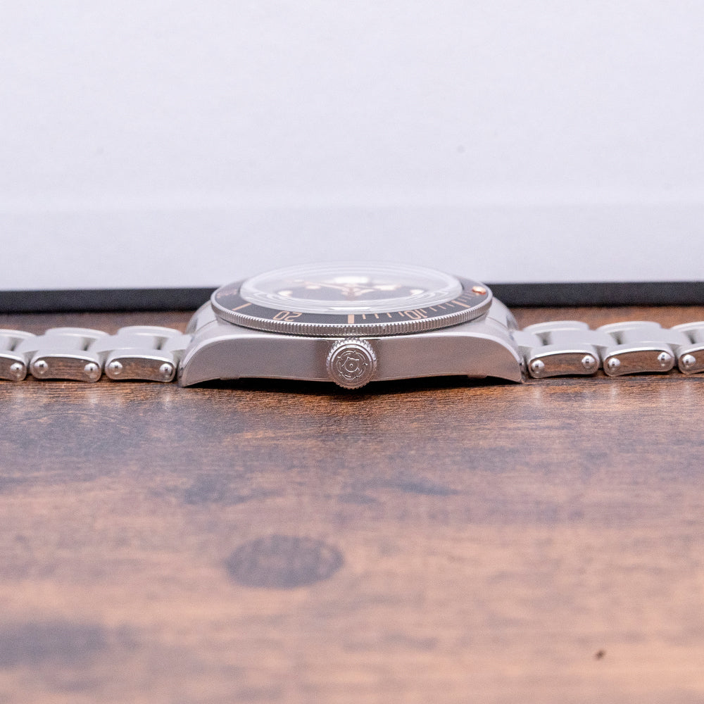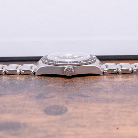 The heritage design of the Tudor Black Bay 58 lends itself to looking incredible on the bracelet or even leather straps, the gilt tones throughout the dial contrast perfectly against the matte black of the dial and bezel. The Tudor BB58 has become a staple in many collections and continues to receive praise and recommendation from most people in the industry, and rightfully so. Don't hesitate to add this to your collection today saving yourself a huge amount off retail!