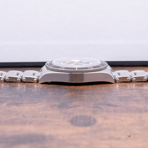 Here we have a 2020 Tudor Black Bay 58 Black on Bracelet 79030N that pays tribute to their first divers; introduced in 1958, the Ref 7924 had a 39mm case and a big crown that achieved 200m water resistance, which was some achievement back then. A 39mm stainless steel case with polished and satin finishes, the subtle curve of the case tapers towards the lugs with a lug-to-lug length of 47.5mm and a case thickness of 12mm, giving the watch an impressive wrist presence. On the right side is a screw-down signed crown, unidirectional dive bezel with 60-minute numerals on a matte black aluminium insert; at 12 o’clock, we have the characteristic red inverted triangle and lume pip. Domed sapphire crystal AR coated protects a matte black dial, a gold-toned minute track is precisely executed with applied gold-toned disc and baton hour markers coated in Super LumiNova, and gold-toned Snowflake hands are coated in SuperLumiNova, complemented by a gold-toned Snowflake counterbalance sweeping second hand. The warm tones of the dial, indexes and hands add a vintage aesthetic to this distinctive dive watch. On the reverse, a coin-edged screw-down case back, inside we have their in-house automatic Calibre MT5402 (COSC) Certified Chronometer, 25 jewels, 28,800 beats per hour and a bidirectional rotor system that provides a very impressive power reserve. The watch comes fitted on a 20mm Tudor stainless steel bracelet with a signed folding push-button release clasp, and it comes with a Tudor presentation box and papers.