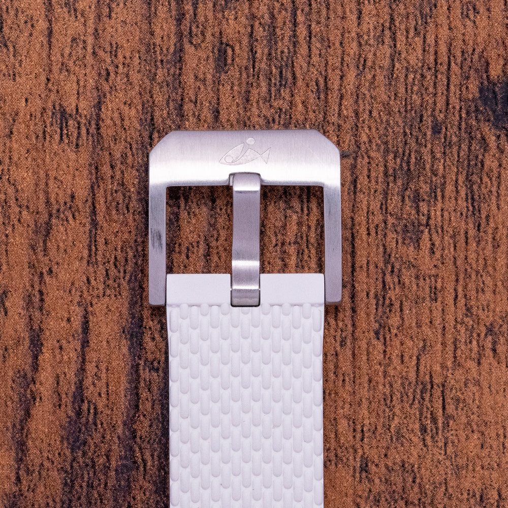 This watch is sold with its original DOXA Box, travel case and paperwork. The watch comes paired with its original DOXA 19mm white rubber strap and a pin buckle with the DOXA fish symbol. The watch is from July 2021 and is sold in worn condition, but overall very good and hardly worn as you can see. The watch comes with our 12-Months Warranty.
