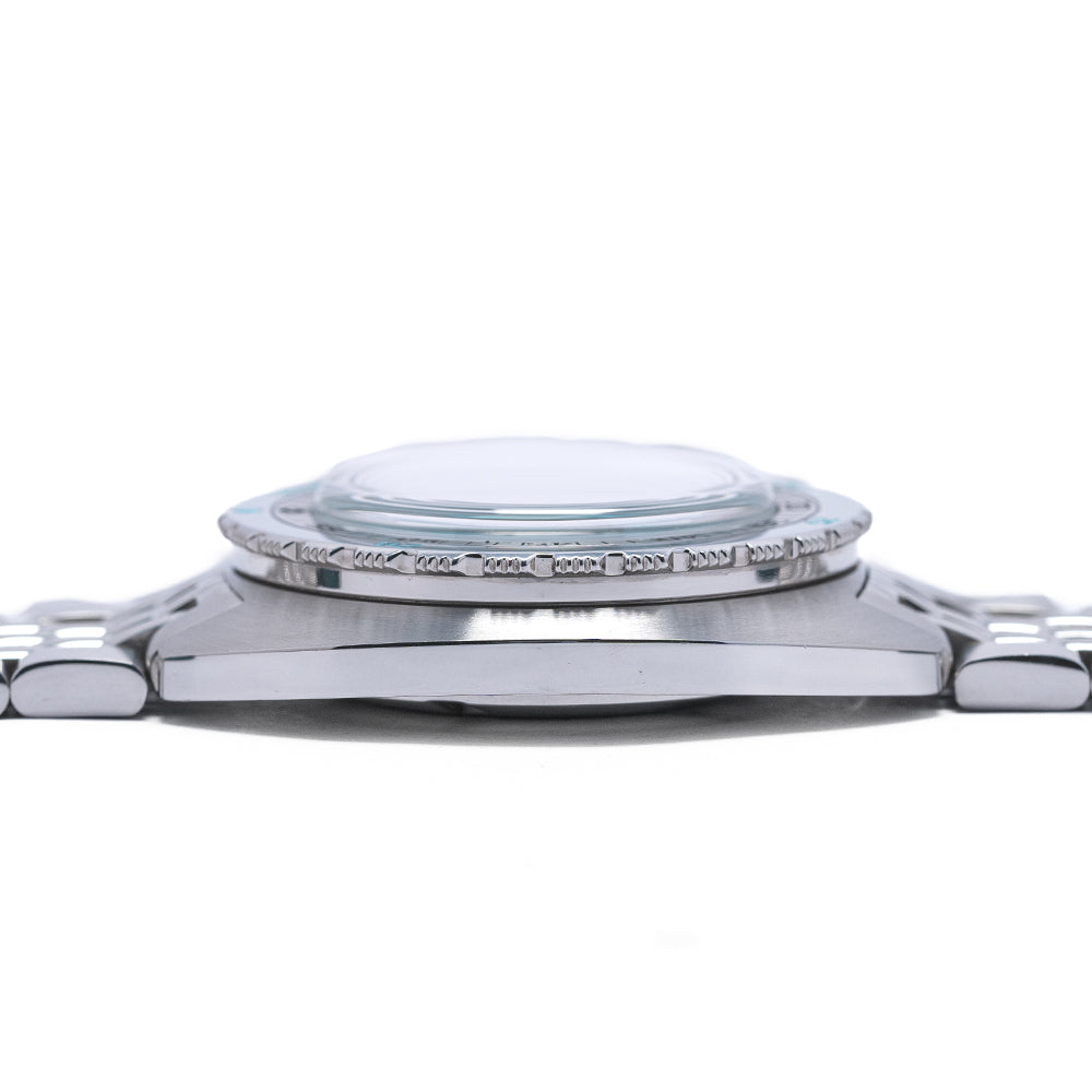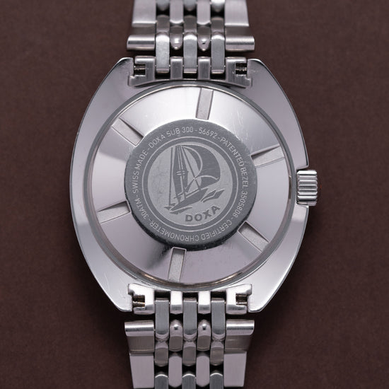 This watch is sold with its original DOXA Box & Booklets. The watch comes paired with its original 20mm Stainless steel “beads of rice” bracelet with its DOXA-signed Folding clasp. The watch is from December 2021 and is sold in worn condition, but overall very fair condition. The watch comes with our 12-Month Warranty.