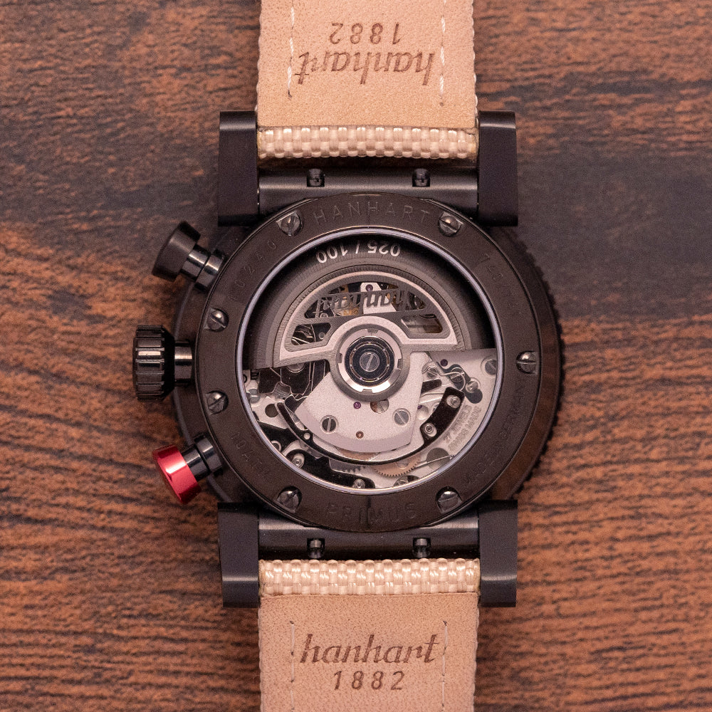 Hanhart was founded in 1882 by watchmaker Johann A. Hanhart. Situated in the small town of Diessenhofen near the River Rhine in Switzerland. In 1902 he relocated to Schwenningen in southern Germany, and Johann's son Wilhelm Julius joined the company in 1920. Innovation and efficient manufacturing techniques saw the introduction of a mechanical stopwatch in 1924. By 1926 they had increased the product range to include wristwatches. In 1938 they produced the single-button “Calibre 40”, which became the mainstay of the company. Expansion during 1939 had the company employing 200 staff. Hanhart chronographs were worn by pilots and naval officers with the production of the iconic “Calibre 41”, their first two-button chronograph. During the war years, production had to stop and Wilhelm fled to neutral Switzerland not returning to Germany until 1949. They entered the very first Baselworld in 1952. The Hanhart Calibre 42 was developed in 1957 and was used by the Luftwaffe of Germany in 1962. Celebrating their 175th Anniversary in 2007 they created the “Opus 41” a hand-wound chronograph in platinum, equipped with an original, Hanhart “Calibre 41”, which was limited to 39 watches. Today they continue to create timepieces using the latest technology and materials whilst keeping to their founding principles.