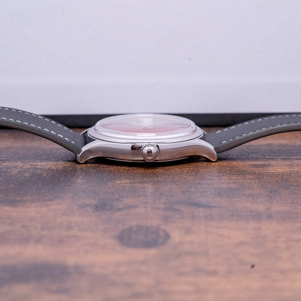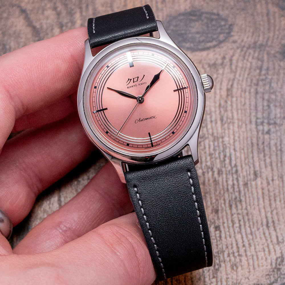 I have been fortunate enough to have sold a few Kurono Tokyo Toki's previously and they rarely make it to the website, so this is a great opportunity to pick one up at a great price today. The finishing and tone of the dial is spectacular on and off the wrist, this has to be one of the strongest Salmon dials I have yet seen on a watch. Do not hesitate to book an appointment to see this one in the metal and on your wrist for yourself!