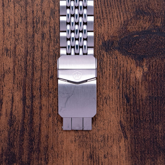 This watch is sold with its original Nivada Grenchen box, swing tag and paperwork. The watch comes paired with its original 20mm Nivada Grenchen Beads of Rice polished stainless steel bracelet with a signed fliplock folding clasp, all links provided. The watch is from September 2021 and is sold in worn condition, overall very fair condition as you can see from the photographs. The watch comes with our 12-Month Warranty.