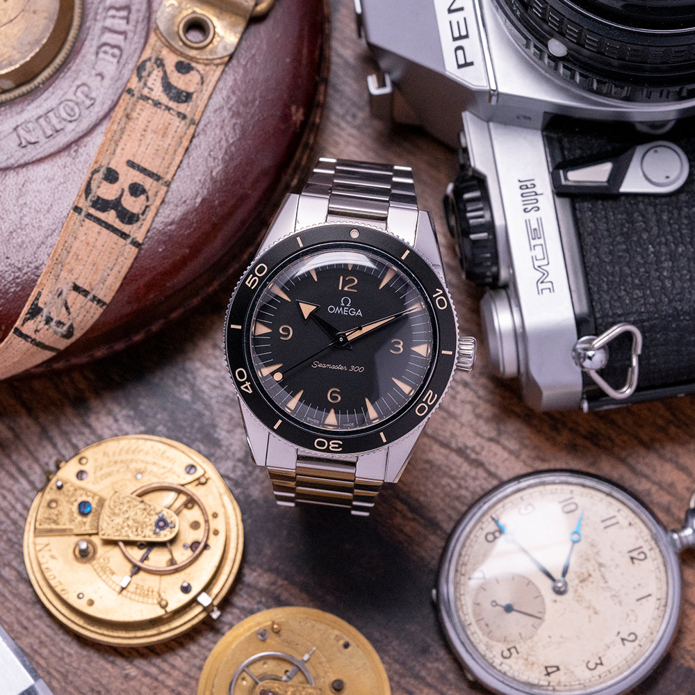This Omega Seamaster 300 Heritage bridges the vintage and modern watch world into a package that most modern watch lovers will adore, bigger proportions, heavier on the wrist and all the bells and whistles you expect from Omega with the Co-Axial caliber and the heavy-duty bracelet with quick adjustment on the clasp! Don't hesitate to book an appointment to try this one on for yourself.