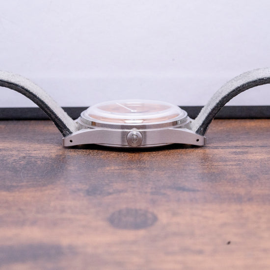 This Paulin Neo B Orange features a laser-cut Anodised Aluminium grain textured dial hand-dyed vibrant orange, making each dial unique, and each dial is produced by AnOrdain in the UK, which is owned by Charlotte Paulin's husband, Lewis Heath. These watches are built beautifully with distinctive designs that stand out amongst the crowd, I would not hesitate to add this one to your collection today!