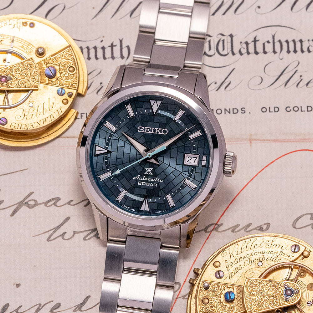 Here we have a 2021 Seiko Alpinist 'Ginza' 140th Anniversary SPB259J1 commemorates 140 years since Seiko's beginnings as a watch and clock repair shop in Ginza, in Tokyo, Japan. The 38.5mm polished and brushed stainless steel case tapers towards the lugs, a lug-to-lug length of 19mm and a case thickness of 12.5mm ensure a comfortable fit on your wrist. The Alpinist line inspires its shape and design. A brushed and polished smooth bezel holds a curved sapphire crystal AR coated on the inside, the striking blue dial has a pattern inspired by the first stone paving areas seen in Ginza hence the same. Applied batons and triangular indexes coated in LumiBrite mark the hours, at 3 o’clock a framed date window, elegant dauphine hands are coated in the same luminance complemented by a pale blue sweeping second hand. Text is precisely applied to the dial with the Prospex logo at 6 o’clock. On the reverse, a screw-down exhibition case back with Limited Edition printed on it. Inside an automatic Seiko Cal. 6R35, 24 jewels, 21,600 beats per hour. The watch comes fitted on a 19mm Seiko brushed and polished stainless steel bracelet with a signed folding clasp, all links are provided. The watch also comes with its Seiko presentation box and unsigned paperwork.