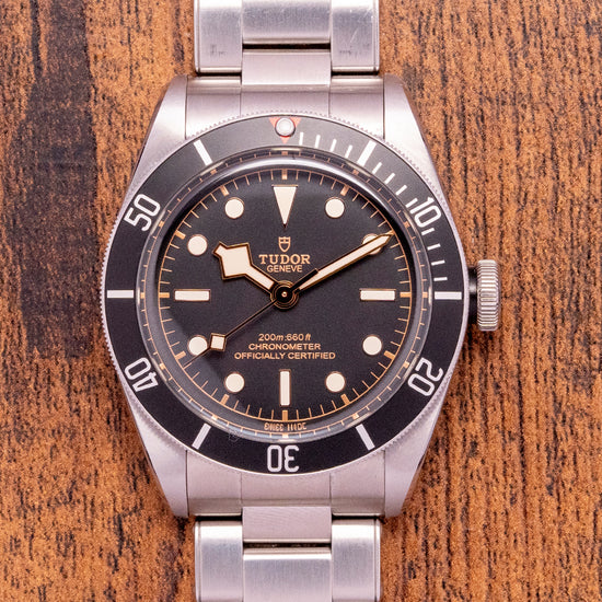 Whilst I do personally prefer the Black Bay 58 in case size and proportions on the wrist, with my 7-inch wrist I can totally wear this 41mm reference and it doesn't feel out of place. So I would suggest not writing this one off if you are in the market for a Black Bay, come in and try it on and see for yourself, especially as this example is at a huge discount on RRP!