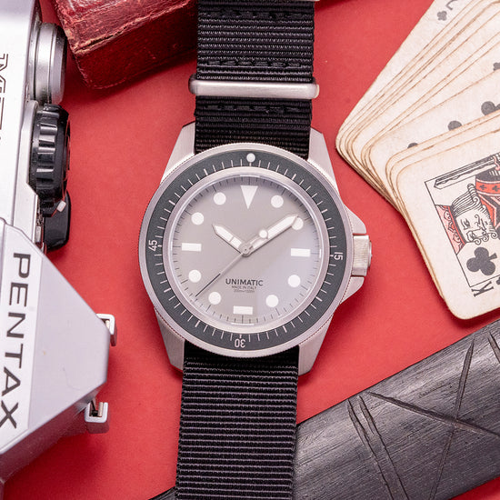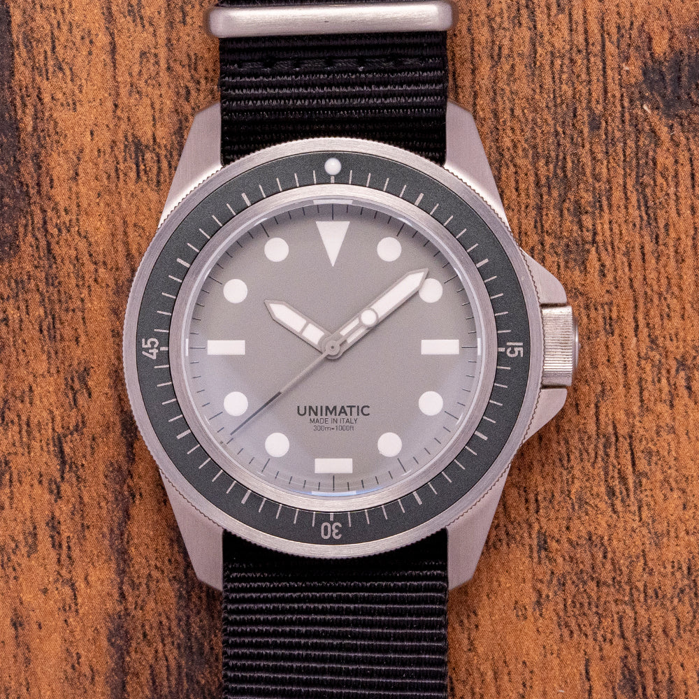 Made in Italy Unimatic was founded by Giovanni Moro and Simone Nunziato, who were both trained as industrial designers at “Politecnico di Milano” where they shared a common interest and passion in wristwatches. They started Unimatic in 2015 with their first product “Modello Uno”. Each piece is unique and hand-manufactured in Milano, Italy.