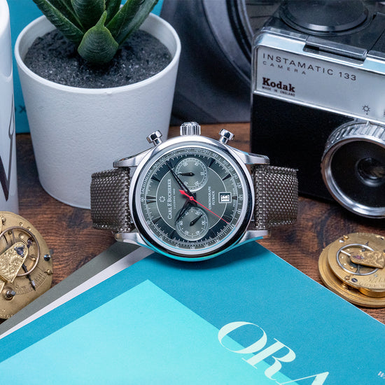 Amazingly this Manero Flyback Chronograph in Green is the first Carl F. Bucherer I have had in stock at KibbleWatches and I am thoroughly impressed. This at 43mm is no small watch but wears far better on the wrist than those dimensions would make you believe. The design is fantastic and really draws you in, this is one well worth seeing in the metal if you are unsure!