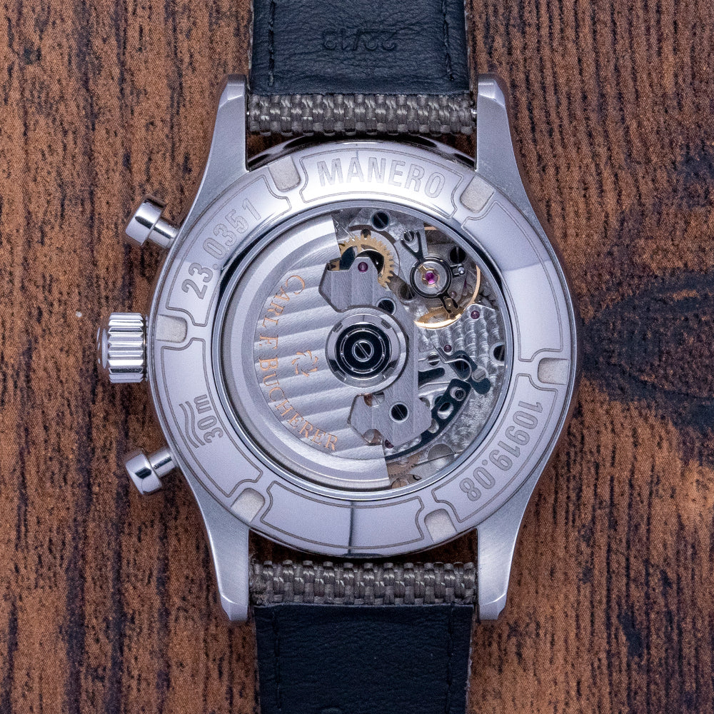 This watch is sold with its Carl F. Bucherer case, swing tag and card. The watch comes paired with its 20mm Carl F. Bucherer canvas strap with a signed pin buckle. The watch is from September 2022 and is in used, but very fair condition, as you can see from the photos. The watch comes with our 12-Months Warranty.