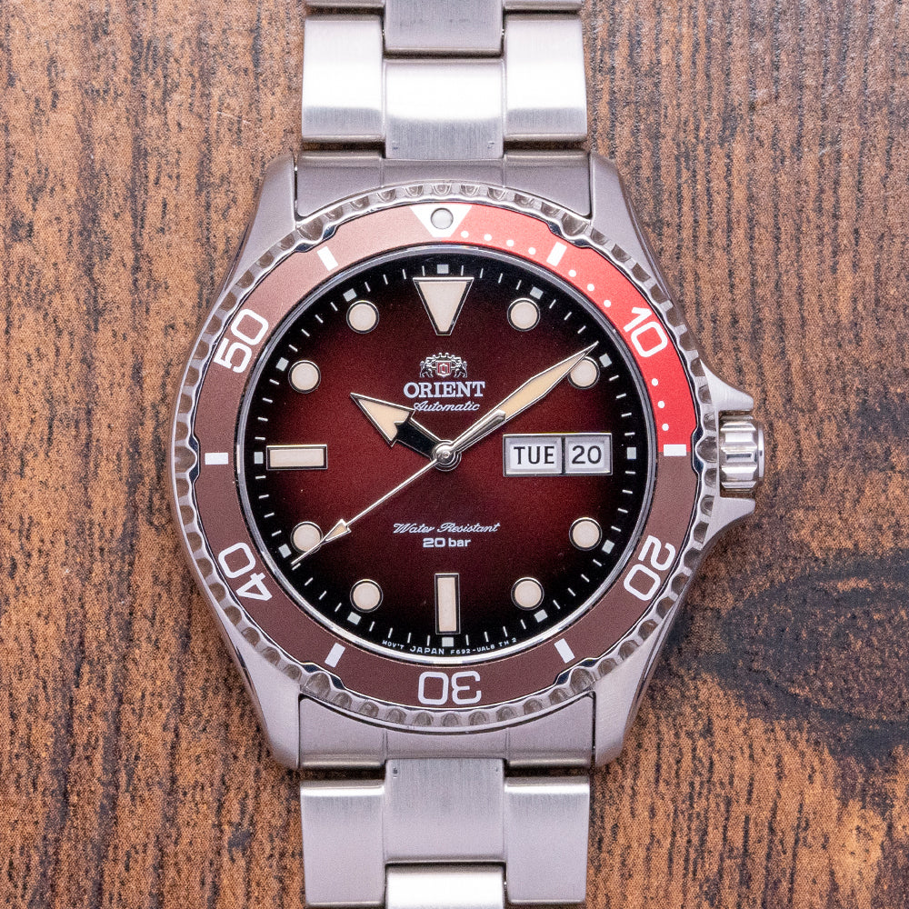 This Orient Kamasu Mako III Red/Brown has quickly become my favourite Orient yet, with the tone of the dial contrasting perfectly against the bezel and the faux-patina on the lume, it is amazing! As always the build quality is fantastic and the watch wears beautifully on the wrist, it punches far above its price range so don't hesitate to add it to your collection.