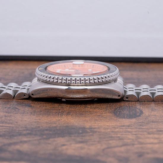 This watch is sold with its original Seiko box, swing tag and paperwork. The watch comes paired with its original 22mm Seiko 5-link polished and brushed Jubilee stainless steel bracelet with a signed folding clasp and secure lock, all links are provided. The watch is from Circa. 2022 and is sold in worn but fantastic condition as you can see, worn a handful of times at most. The watch comes with our 12-Months Warranty.