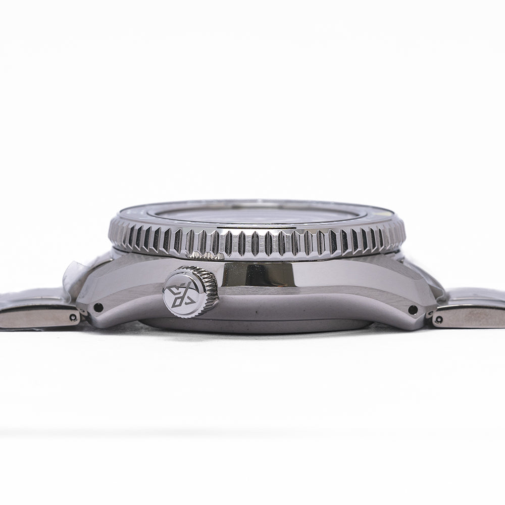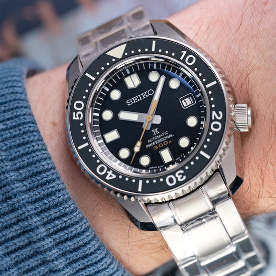 This model is a tank on the wrist and it epitomises what Seiko can do so well, a true tool watch! With that said, I am always amazed by how well this watch still wears on the wrist, with a 50mm lug to lug it is right at the edge of what I am personally comfortable with, but paired on the provided Crafter Blue rubber strap it hugs the wrist and doesn't feel too big at all! If you are unsure, book an appointment and come see for yourself.