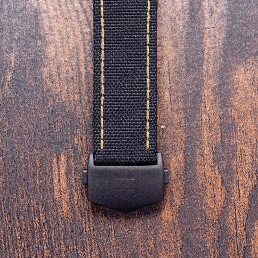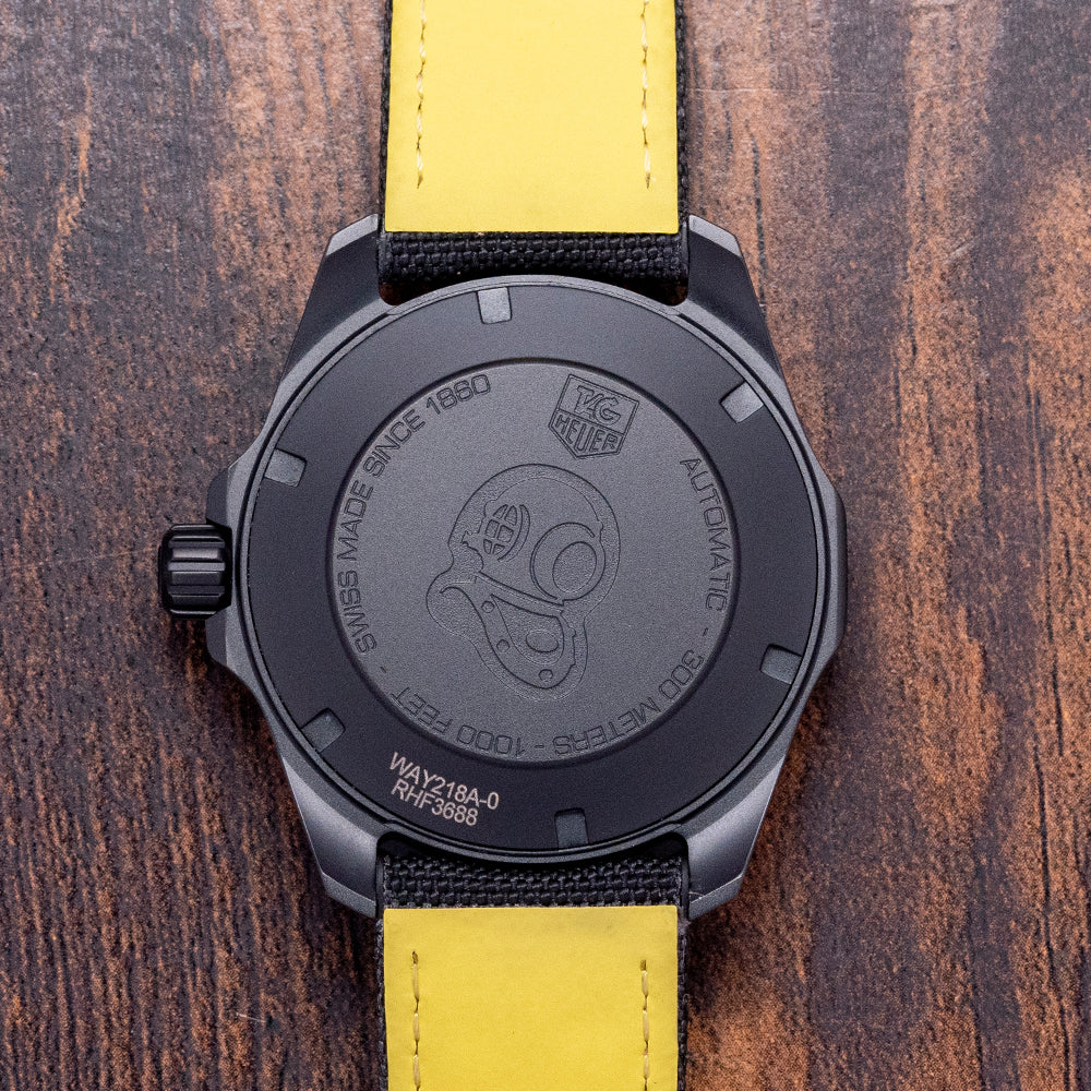 This watch is sold with its original Tag Heuer box and papers. It comes paired with its fitted 20mm black rubber strap, cut to fit a 7-inch wrist with a black TAG clasp, plus its original TAG Heuer 20mm black and yellow stitched fabric strap with a signed push-button-released folding clasp. The watch is from October 2022 and is sold in worn condition, but overall, it is in fair condition, as you can see in the photographs. The watch comes with our 12-Months Warranty.