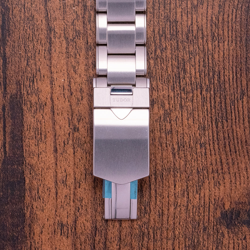 This watch is sold with its original Tudor box and paperwork. The watch comes paired with a 20mm Tudor stainless steel simulated rivet-style bracelet that uses screws to remove the links, a signed deployment safety T-clasp and a clamshell lock, all links are provided. The watch is from August 2022 and is sold in great condition, as you can see. The watch comes with its Manufacturer's Warranty.