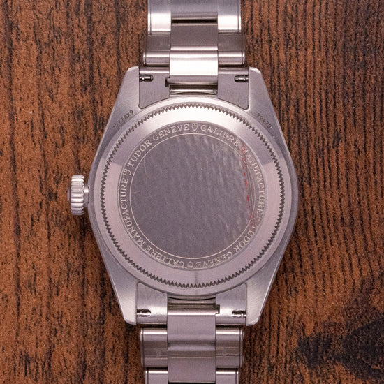 This watch is sold with its original Tudor Box, swing tag and paperwork. The watch comes paired with its original Tudor 20mm brushed and polished stainless steel simulated rivet style bracelet that is in fact secured with screws, a signed deployment safety T-clasp with a glide lock system for adjustments on the fly and a clamshell lock, all links provided. The watch is from May 2022 and is sold in worn condition, but as you can see in the photographs, it is in fair condition, a full case and bracelet refurb can be provided at an additional cost. The watch comes with its Manufacturer's Warranty.