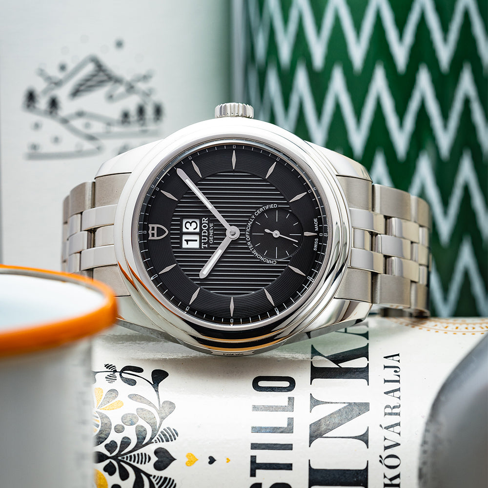 The Tudor trademark was first registered in 1926 by the Swiss watchmaking company “Veuve de Philippe Hüther” on behalf of Hans Wilsdorf, the founder of Rolex watches. Wilsdorf took it over himself in 1936. Just after the second world war, Hans Wilsdorf Founder of Rolex knew that the time had come to expand and give the Tudor brand a true identity of its own. The Tudor Rose started to appear on their dials from this time. Thus, on 6 March 1946, he created the “Montres TUDOR S.A.” company, specialising in models for both men and women. Rolex guaranteed the technical, aesthetic and functional characteristics, along with the distribution and after-sales service. In 1948 we saw the first Tudor-specific advertising. A few years later they introduced the TUDOR Oyster Prince in 1952. Hans Wilsdorf allowed Tudor to use their waterproof Oyster case and the original self-winding Perpetual ’rotor’ movement. This was an exclusive arrangement that benefitted both brands. Development soon commenced with the introduction of the TUDOR Oyster Prince Submariner, reference 7922 in 1954. This watch was quickly adopted by the French Navy in 1956. Building on their reputation of robustness in 1961 the Rose was replaced by the shield. Later in 1969, we saw the design changes in Ref. 7016 where for the first time square indexes and angular hands nicknamed “snowflake” allowed for a greater amount of lume to be applied; this was appreciated by the divers of the French Navy. Today these innovations can be seen in the Black Bay and Pelagos collections. In 1971 Tudor introduced the Oysterdate chronographs nicknamed “Monte-Carlo” due to their resembling a roulette wheel. Celebrating their 50th anniversary in 1996. In that same year, Tudor decided to shed Rolex-signed components such as the cases, crowns and bracelets in favour of Tudor-branded ones. Today Tudor uses their in-house movements developed initially in 2015 in collaboration with Breitling.