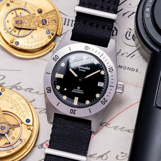 As a lover of vintage skin divers, it will come as no surprise I am a massive fan of this release by Aquastar! Very true to the original, even down to the wonderful proportions at 37mm and the stainless steel bezel. If I owned this, I'd rotate between the NATO and a nice brown suede strap, it would look incredible!
