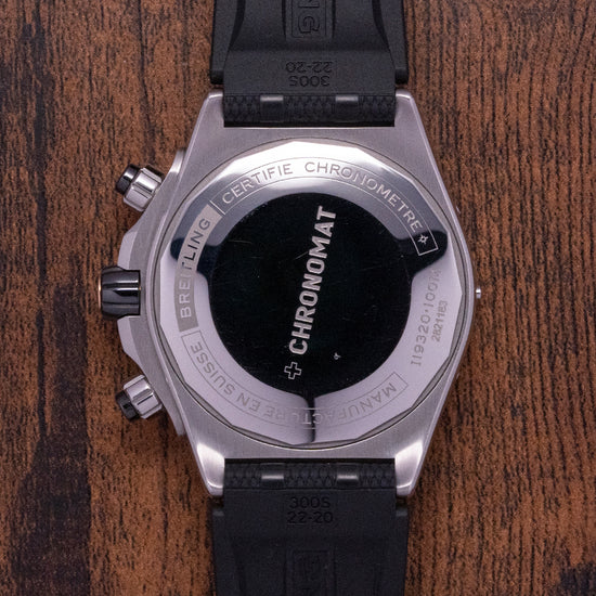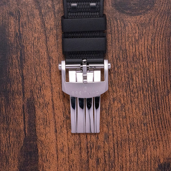 This watch is sold with its original Breitling box, bezel protector and Breitling paperwork. The watch comes paired with its original Breitling 22mm black Rubber Rouleaux-inspired strap with a signed deployment clasp. The watch is from July 2023 and is sold in worn, but very fair condition, as you can see from the photographs. The watch comes with its Manufacturer's Warranty.