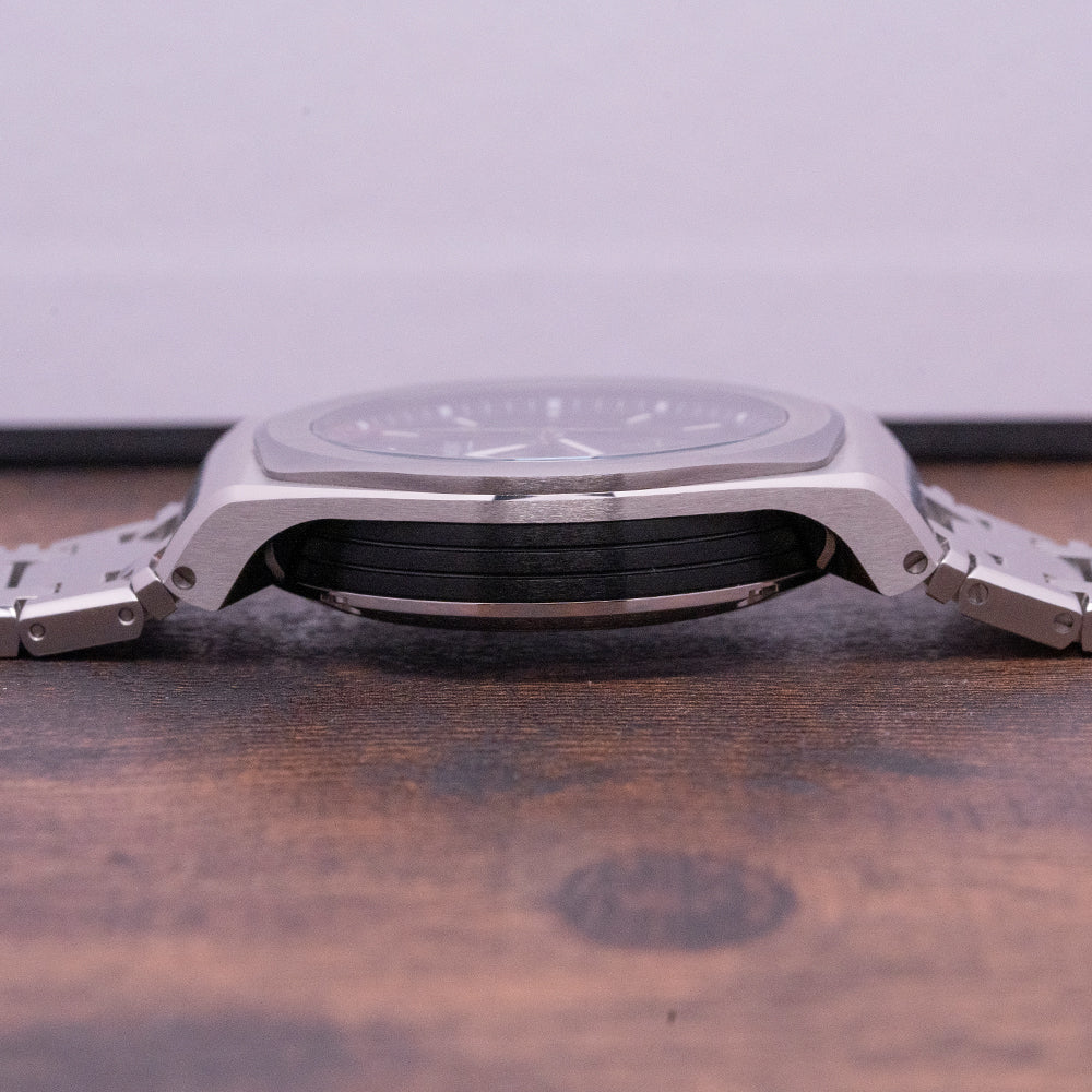 There is no denying that Bremont's are large watches, but I'm always amazed by how well they wear on the wrist and this new model was certainly a surprise too! The shape of the case sits on the wrist comfortably. Everyone knows I love an integrated bracelet and this is Bremont's first flowing integrated bracelet, at first on photos I wasn't impressed, though in person I can see the appeal for those who love it and I can see why its not quite the watch for some... This is one well worth making a trip to the office to see in the metal and on your wrist!