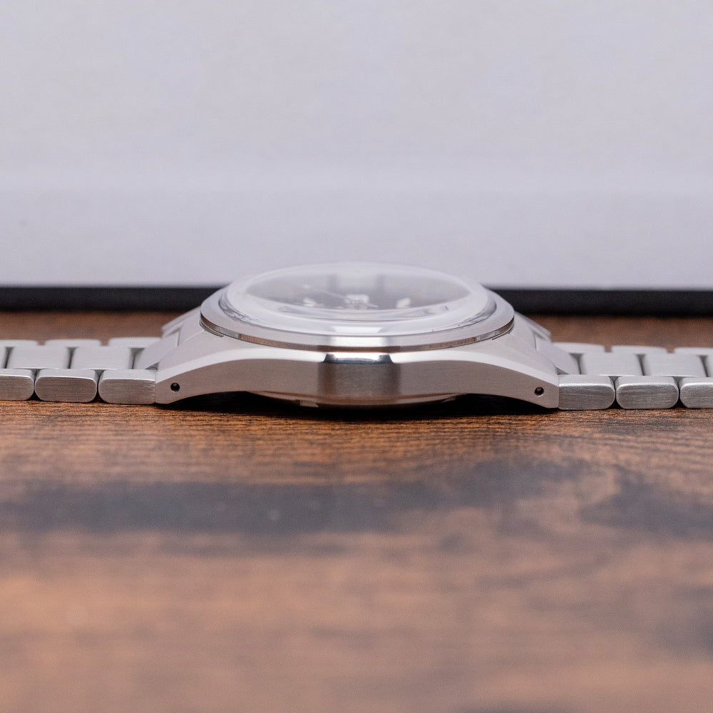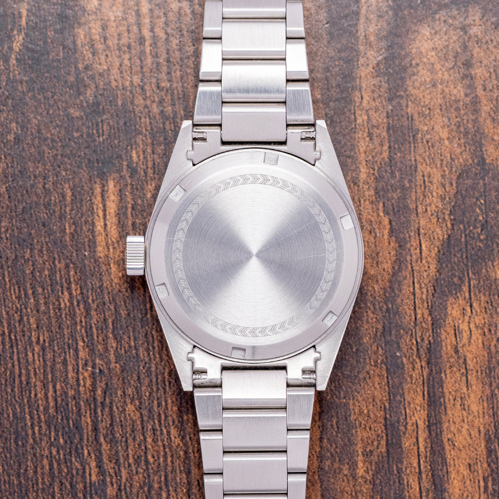 Here we have a 2023 Lorier Falcon SIII 'Waffle Dial' Automatic featuring a 36mm 316L stainless steel case that sits on your wrist with tapered flat-ended drilled lugs. Its brushed, curved flanks are topped by a flowing, polished chamfered edge, leading to a comfortable lug-to-lug length of 44mm and a case thickness of 11mm. On the right side, a coin-edged screw-down signed crown. A polished and brushed smooth bezel holds a domed Hesalite crystal above a striking black honeycomb ‘waffle’ explorer dial. An outer minute track surrounds 3D-printed bullet-shaped indexes and 3, 6, and 9 numerals coated in BGW9 Super-LumiNova, marking the hours. Steel hands filled with the same lume are complemented by an arrow-point sweeping second hand. At noon, we have the Lorier motif ‘Automatic’ printed underneath, and at 6 o’clock, ‘Falcon’ completes this rugged expedition timepiece. On the reverse, a screw-down solid case back, inside an automatic Miyota Cal. 90S5, 24 jewels, 28,800 beats per hour. This movement is part of the high-grade Miyota family, with hand-winding and hacking for your convenience. It comes paired with its 20mm Lorier brushed 3-link stainless steel bracelet secured by a signed push-button deployant clasp; all links are provided. This watch is sold with its original Lorier presentation box and paperwork.