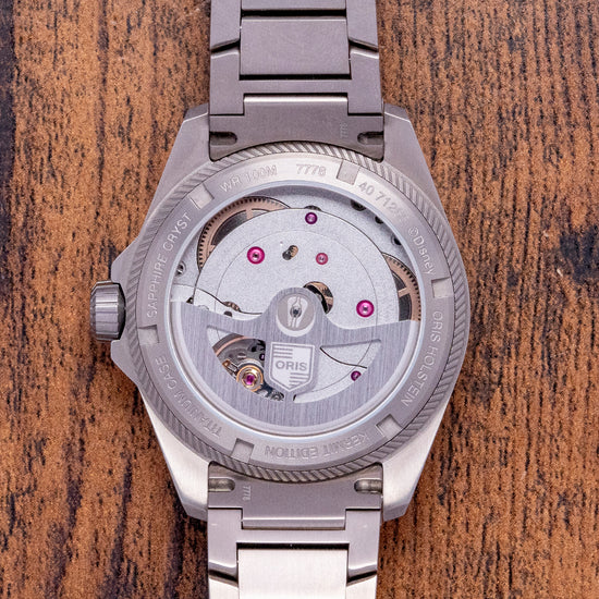 This watch is sold as a full set and comes with its Oris box, swing tags and Oris paperwork. The watch comes fitted on a brushed 19mm Titanium bracelet with chamfered sides and a signed folding clasp, the watch comes from March 2023 and is in very fair pre-owned condition, as you can see. The watch comes with its Manufacturer's Warranty.