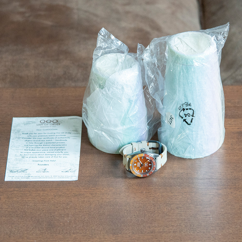 This watch is sold with its original Out of Order box (Shaker) and a Card. The watch comes paired with its original white 20mm vegetable-tanned cowhide strap and a pin buckle aged by their patented OOO process. The watch is from Circa. 2023 and is sold in worn condition, but overall great condition as you can see. The watch comes with its Manufacturer’s Warranty.