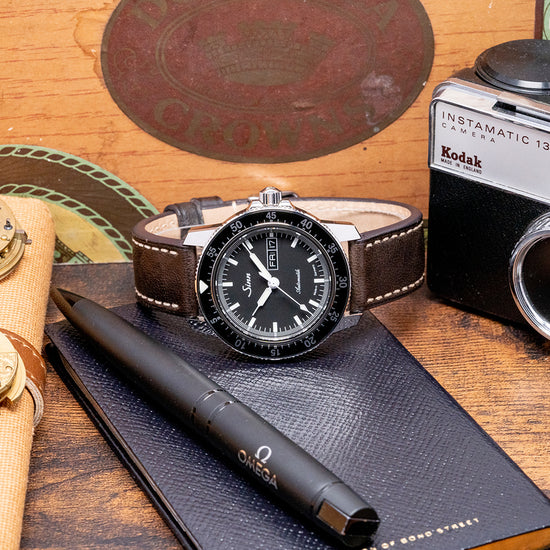 This watch is sold with its original Sinn box, swing tag, spring bar removal tool and paperwork. The watch comes paired with its original Sinn 20mm vintage style leather strap with a signed buckle. The watch is from July 2023 and is sold in worn condition, but overall this is in very fair condition as you can see. The watch comes with its Manufacturer's Warranty.