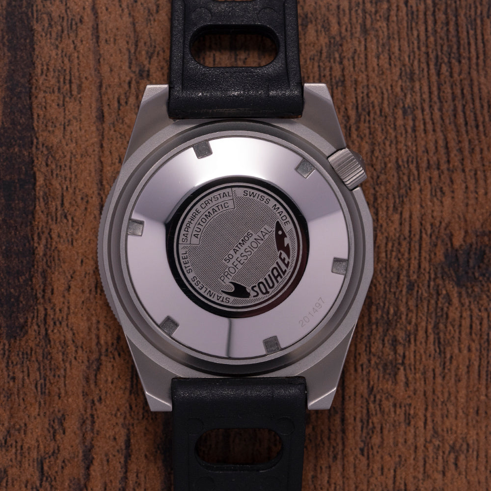 Squale was founded by Charles von Büren in Neuchâtel, Switzerland, in 1946 as a manufacturer of watchcases and other components for other watch brands. In 1950 von Buren began to produce professional dive watches under the Squale name. During the 1960s and 70s, Squale produced cases for many brands including Prima, Blandford, Deman Watch, Berio and Sinn. In 1974 Squale decided to enter the watch market in its own right. Unfortunately like many other watch brands during the “quartz crisis,” they stopped production in 1989. Relaunching the brand in 2010 the Maggi family who were previously distributors of von Buren and Squale watches in Italy. Their headquarters can be found in Milan, with watch production in Grenchen in the Jura Valley Switzerland.