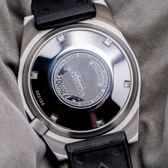 Squale was founded by Charles von Büren in Neuchâtel, Switzerland, in 1946 as a manufacturer of watch cases and other components for other watch brands. In 1950, von Buren began to produce professional dive watches under the Squale name. During the 1960s and 70s, Squale produced cases for many brands including Prima, Blandford, Deman Watch, Berio and Sinn. In 1974, Squale decided to enter the watch market in its own right. Unfortunately, like many other watch brands during the “quartz crisis”, they stopped production in 1989. Relaunching the brand in 2010, the Maggi family, who were previously distributors of von Buren and Squale watches in Italy. Their headquarters can be found in Milan, with watch production in Grenchen in the Jura valley, Switzerland.
