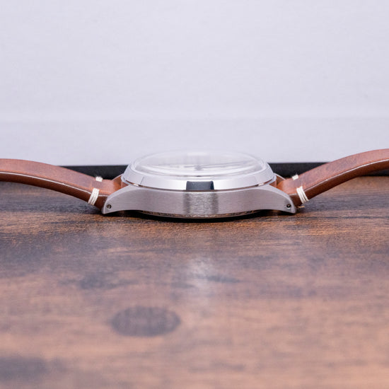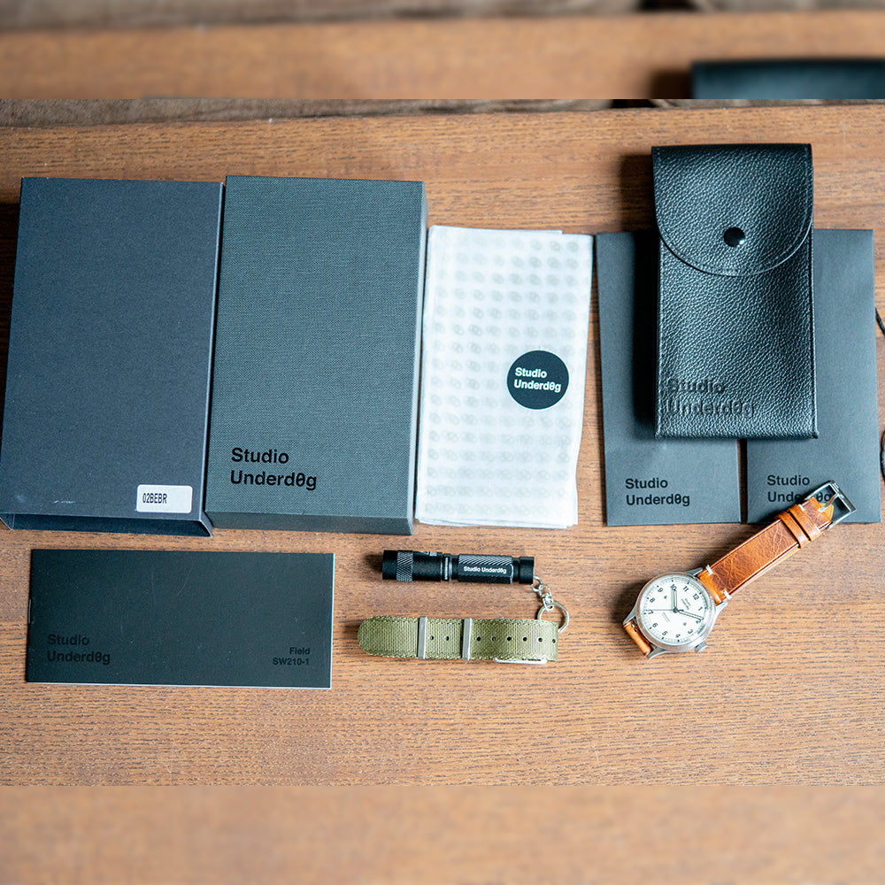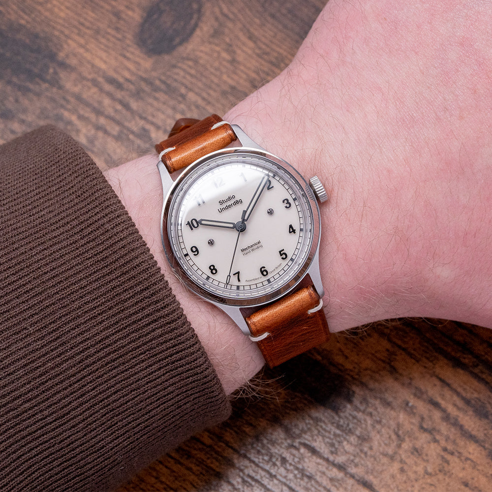 This watch is sold with its original Studio Underd0g box, travel case and paperwork. The watch comes paired with an 18mm Brown Epsom calfskin strap handmade by The Strap Tailor and a signed pin buckle, plus an 18mm NATO strap. The watch is from Circa. 2023 and is sold in worn but excellent condition as you can see, worn a handful of times at most. The watch comes with its Manufacturer's Warranty.