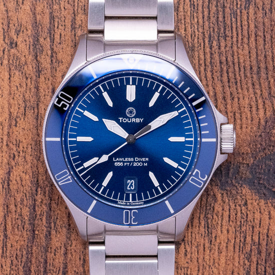 If you haven't had the chance to experience a Tourby in person, book an appointment and check out this Lawless Blue 40mm Diver for yourself. The build quality is undeniable, the design is fantastic and the shade of blue used for the dial is mesmerising, even more mesmerising is the blue on the bezel which changes depending on the light!