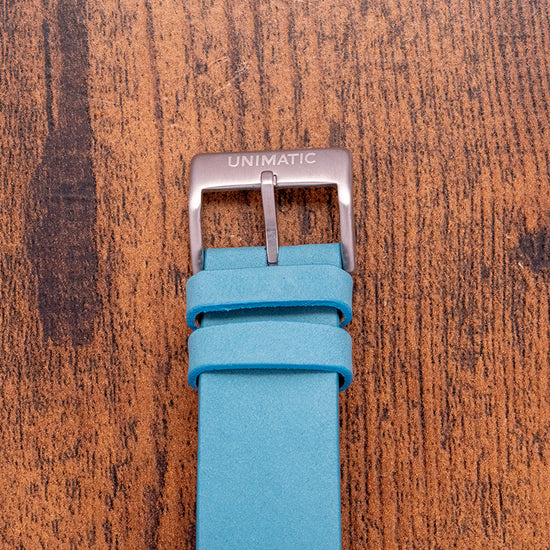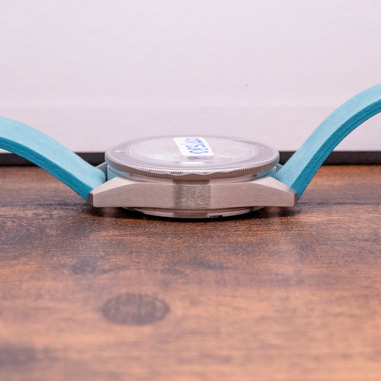 This watch is sold with its original Unimatic pelican case and paperwork. The watch comes paired with its original 22mm Turquoise Nubuck leather strap with a signed brushed buckle plus an additional black 22mm nylon NATO strap with a signed brushed buckle in the box. The watch is from Circa. 2023 and is sold in unworn Like-New condition as you can see from the photographs. The watch comes with our 12-Months Warranty.