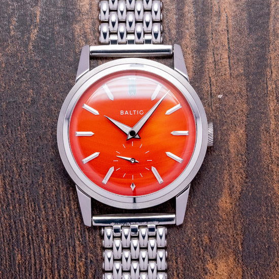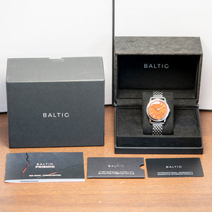 Ettiene Malec, a Frenchman, founded Baltic in 2017. The name comes from his father’s birthplace in northern Poland near the Baltic Sea. His inspiration came after finding a suitcase full of his late father's watches with a notebook full of details about the watches. He soon after started to meet other collectors and started to collect himself. Then, seeing the huge interest in vintage timepieces, he completed a Kickstarter campaign with the Baltic HMS 001 and a Bi-Compax 001. Each watch is assembled in France near Besançon. Today, the brand continues to grow through its social media presence and its website, to offer contemporary-designed, vintage-inspired timepieces.