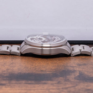 The C1 Bel Canto, easily the watch that shot Christopher Ward off into metaphorical space in the watch industry and has been a core model to their current growth and generating excitement for what is to come from the brand. This is the lovely 'Viola' purple model, which begs to be seen in direct light where the purple really pops. Paired with the comfortable titanium bracelet, this watch ticks all the boxes. I would not hesitate to add it to your collection today and save yourself a pretty penny on the retail price!