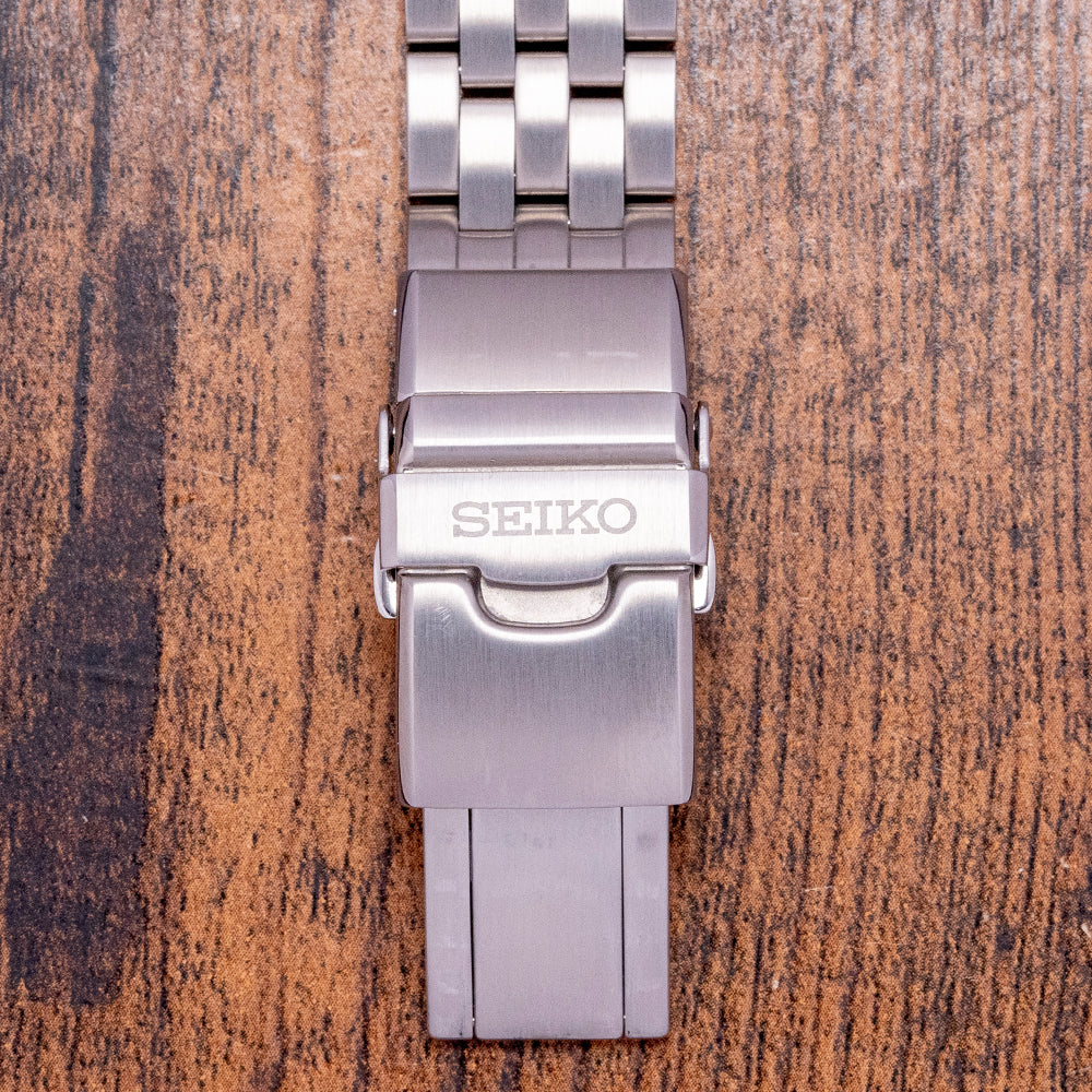 This watch is sold with its original Seiko box, swing tag, and paperwork. It is paired with its 20mm Seiko 5-link brushed stainless steel bracelet secured by a fliplock three-fold clasp; all links are provided. The watch is from February 2024 and is sold in worn but very fair condition, worn a handful of times at most. The watch comes with its original Manufacturer's Warranty.