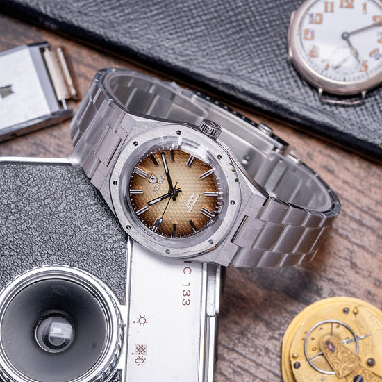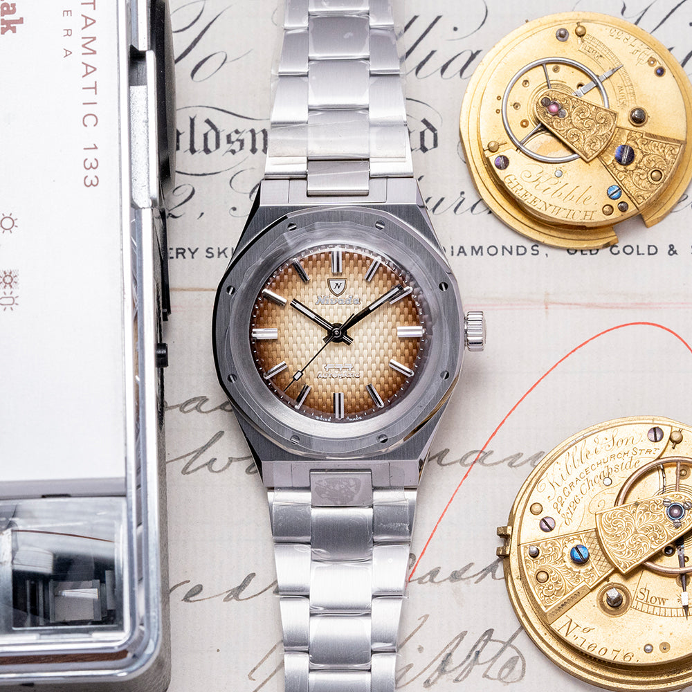 When the Nivada F77 was announced I was instantly a fan and even more impressed with the fact that Nivada offers both a date and no-date option, putting a quick end to the "debate" of which is preferred. This Brown Smoked dial was released recently and the tone is wonderful and really suits the design, I wouldn't hesitate to snap this fully stickered example up for a nice discount on RRP!