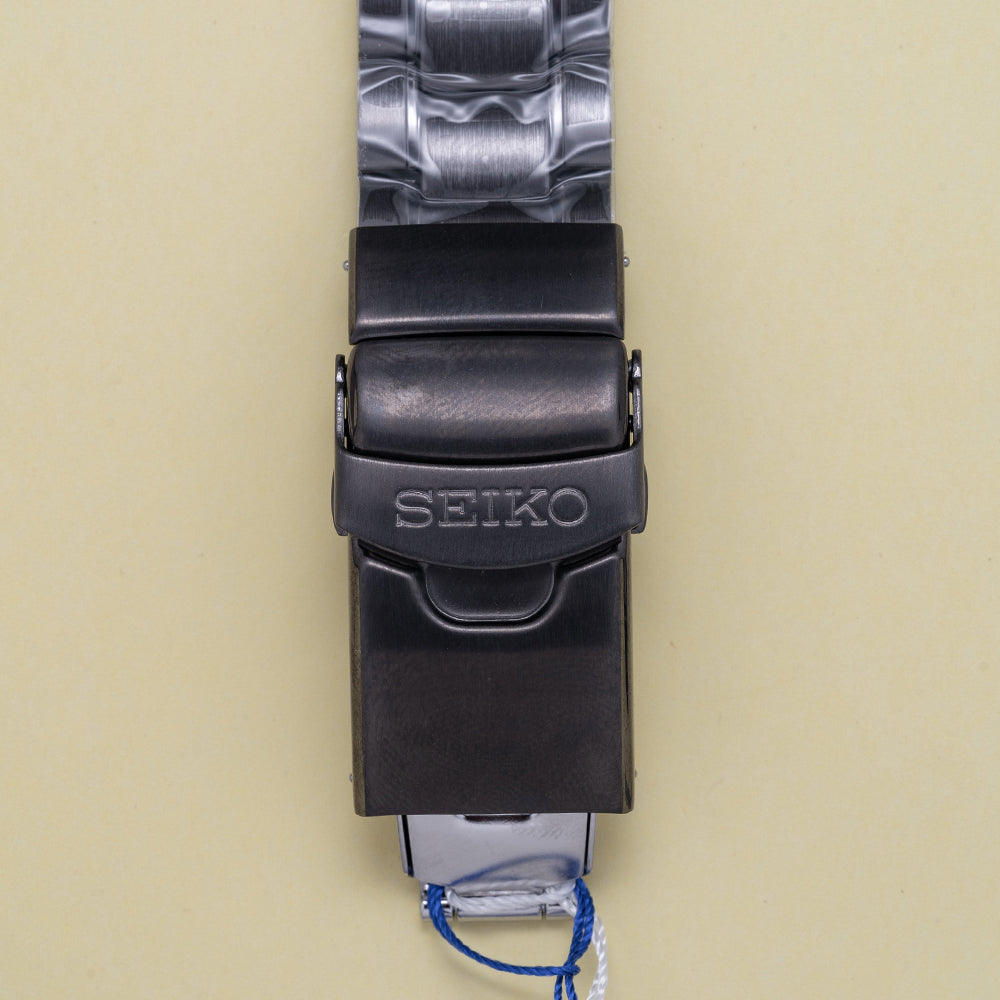 This watch is sold with its original Seiko box and Seiko paperwork. The watch comes paired on its original Seiko 22mm black Ion Plated bracelet with a signed push-button release three-fold clasp and dive extension. The watch is in an Unworn condition as you can see from the photographs. The watch is from Circa. 2020. The watch is sold with our 12-Month Warranty.