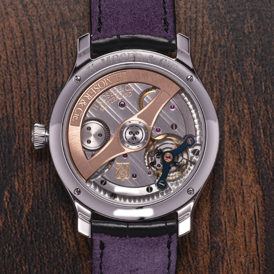 Heinrich Moser, born in Schaffhausen, founded H. Moser & Cie. in 1828. As a young entrepreneur, he quickly learnt about the watchmaking profession. He found himself in St. Petersburg and soon became “the specialist” for its aristocracy. They built a factory employing several hundred craftspeople in Switzerland. He produced around 500,000 watches during his lifetime. The watches ranged from three-hand watches to incredible “Grande complications”. Heinrich was passionate and deeply involved in the industrialisation of Schaffhausen, including the building of the first Swiss dam, which featured an innovative hydro-mechanical turbine to produce energy for the machinery used in watch production. Due to the “quartz crisis,” they became a part of the Dixi Mechanique Group. Their original brand name was changed, becoming "Hy Moser & Cie". In 2002, Dr Jürgen Lange and Heinrich Moser's great-grandson Roger Nicholas Balsiger founded Moser Schaffhausen AG. In 2005, they built a new factory in Schaffhausen, Switzerland, and H. Moser & Cie's trademark was formally re-launched. The MELB Holding Group is owned by H. Moser & Cie, CEO, the former boss at Audemars Piguet, Georges-Henri Meylan. They have been based in Le Brassus in Switzerland since 2012.